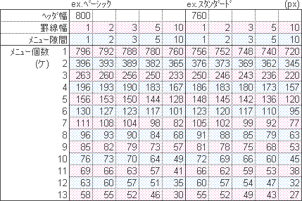 とりあえず「ベーシック」「メニュー6ケ」「隙間1px」「罫線1px」であれば、130pxのままで大丈夫です。