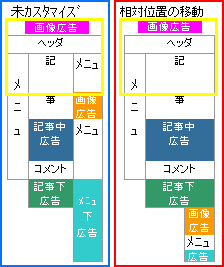 図中「相対位置の移動」のように、メニューカラムが記事よりも下にあるようなレイアウトは、違反であろうと推測しています。