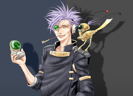 しかし、藪の葉ずえは動きもせず、突如として目の前に二人の人影が立った。まるで、空中から出現したかのように。一人は老婆、眩しいほど純白のゆったりした長衣が、皺がれた顔と、黄ばんだ白髪を、かえって目立たせている。残る一人は、若者だった。ニエルの趣味としては、同性に使う形容詞ではなかったのだが、若く美しいとしか形容のできない青年だった。